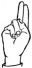 На ћирилици написано КОНСТАНТИН КОС састоји се из 13 слова [?]. Исписано ћириличном једноручном азбуком за глувонеме: